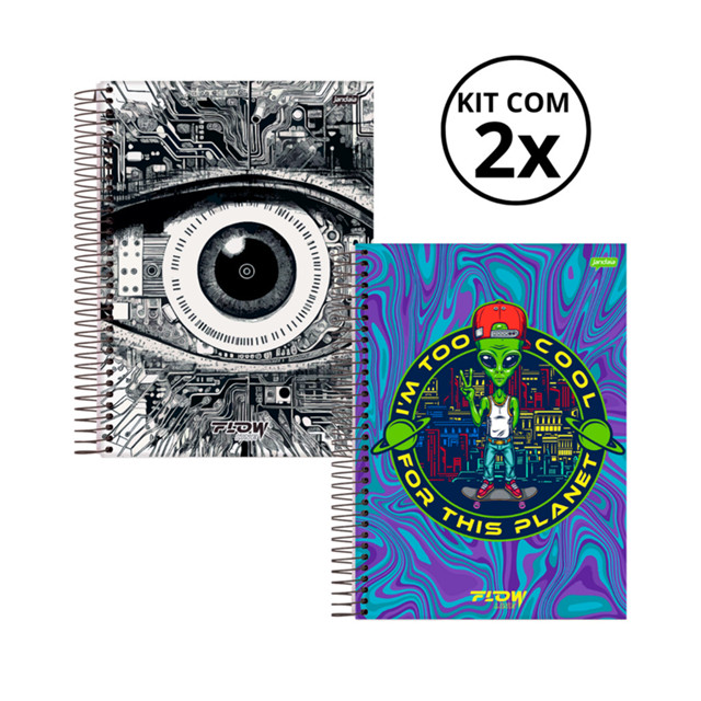 Kit 02 Cadernos Universitário 1 Matéria 80 Folhas Flow - Jandaia CAPA:Olho/Alien