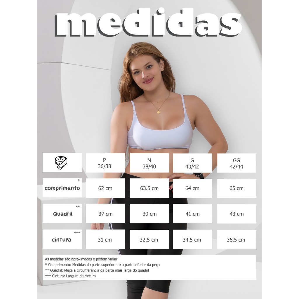 A legging capri combina conforto e estilo em um único modelo! Com ajuste perfeito, cintura alta e tecido de compressão, ela oferece suporte e liberdade para o seu dia a dia ou treino. O corte capri traz frescor, ideal para qualquer estação. Tecido: Suplex Power (Sem Transparência) Composição: 92% Poliéster 8% Elastano Cores Disponíveis: Preto Rosa, Preto Branco, Azul Marinho, Cinza Mescla TAMANHOS/MEDIDAS As medidas a seguir se referem ao tamanho da peça, que por conter elastano em sua composição, possuem alta elasticidade P - Veste 36/38 M - Veste 40 G - Veste 42 GG - Veste 44 DÚVIDAS FREQUENTES: 1) Como escolho as cores? Nós já temos algumas combinações de cores montadas para escolher, mas caso prefira fazer sua própria combinação de cores, opte por qualquer variação e envie as cores desejadas imediatamente no campo das perguntas, ou na caixa de mensagens, para que possamos separar da maneira que preferir! 2) Posso escolher tamanhos diferentes? Pode sim! Basta nos avisar pelo chat ou pelo campo das perguntas assim que finalizar a compra, com as cores e tamanhos desejados para cada tamanho!