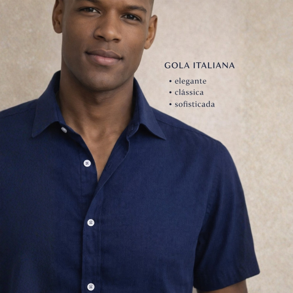 Kit 02 Camisas Gola Italiana + Gola Padre Manga Curta Linho Moderno Premium Sofisticado