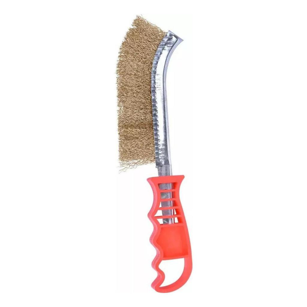 Produto: • Escova manual de aço latonado com cabo de plástico. Detalhes do Produto: • Ideal para uso diário, graças aos seus arames ondulados de 0,33mm. • Fabricado em aço, latão e plástico para maior durabilidade. • Arames ondulados para facilitar a utilização. • Cabo de plástico para um manuseio confortável. • Espessura dos arames: 0,33mm para uma limpeza eficaz.