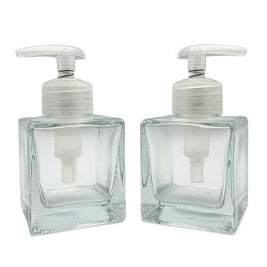Kit 02 Frascos Porta Sabonete de Vidro Cubo 100ml Com Válvula Pump Para Saboneteira Álcool Gel