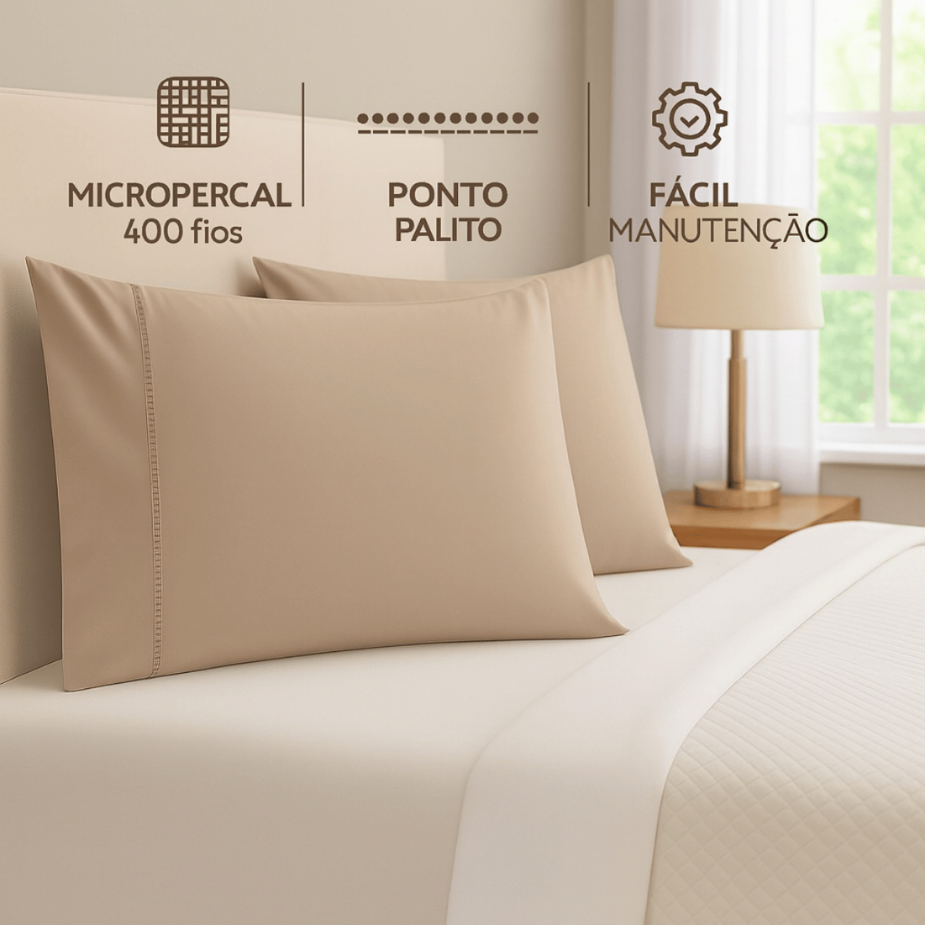 | Kit 02 Fronha 400 Fios Micropercal 70x50cm com Ponto Palito Toque A... este produto | R$ 26,60 | 38% | 4.9/5 | — |