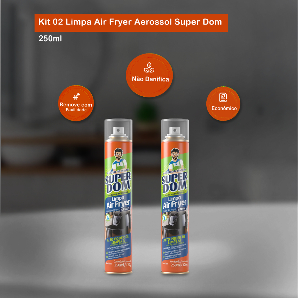 | Kit 02 Limpa Air Fryer Aerossol 250ml Super Dom este produto | R$ 36,74 | 15% | 4.9/5 | 1 |