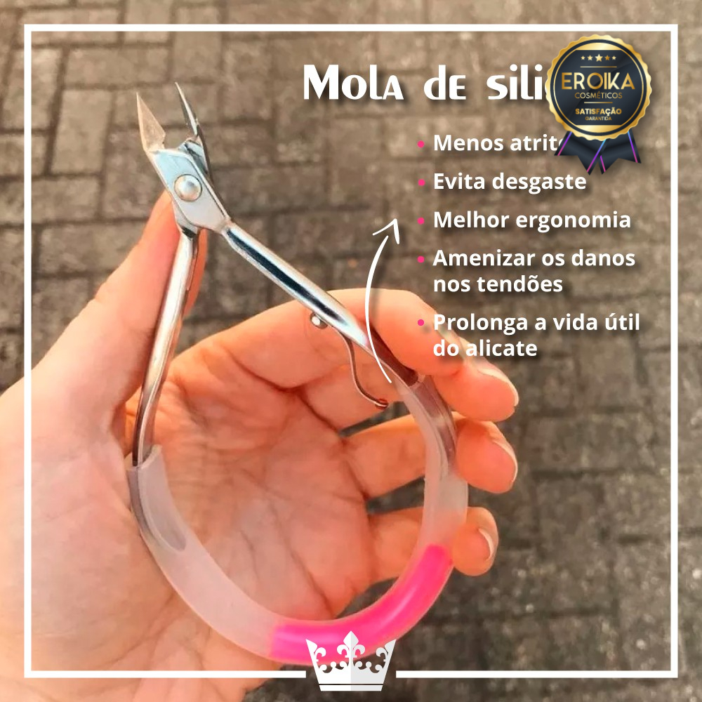 02 Unidades Mola de Silicone para Alicate de Cutícula - Produto de Alta Qualidade e durabilidade - Pode ser esterilizável em Autoclave ou Estufa. O melhor amigo das manicures para evitar cortes na mão e ainda fazer o alicate durar muito mais tempo. "O protetor confere um maior conforto no manuseio do alicate, aliviando a pressão que a mola faz ao fecharmos a mão na hora do corte. A importância de usar essa proteção será de diminuir a pressão durante o movimento de fechar a mão, podendo assim amenizar os danos nos tendões pelo esforço repetitivo (LER - Lesão por esforço repetitivo)", O protetor funciona como um apoio para que a cutilação seja mais prática e rápida. Por isso, torna o processo de fazer as unhas mais dinâmico, menos cansativo e também prolonga a vida útil do alicate, já que o instrumento protege a sua ponta contra o amasso e ajuda a renovar o efeito de mola do alicate