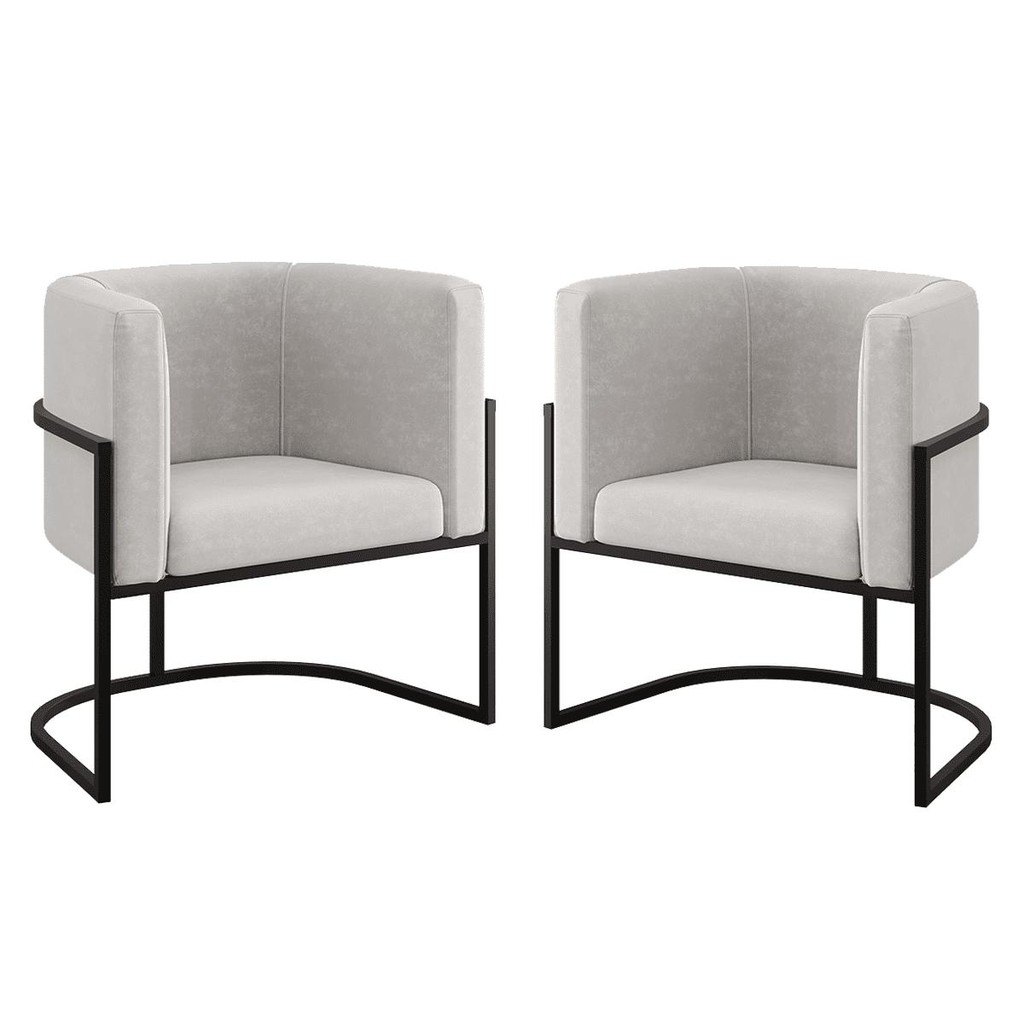 Kit 02 Poltronas Lua com Base de Metal Black Sala Reforçada
