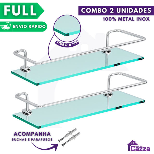 | Kit 02 Porta Shampoo Suporte De Banheiro Shampoo Reto Vidro 6mm Aco... este produto | R$ 23,99 | 49% | 4.9/5 | 172 |