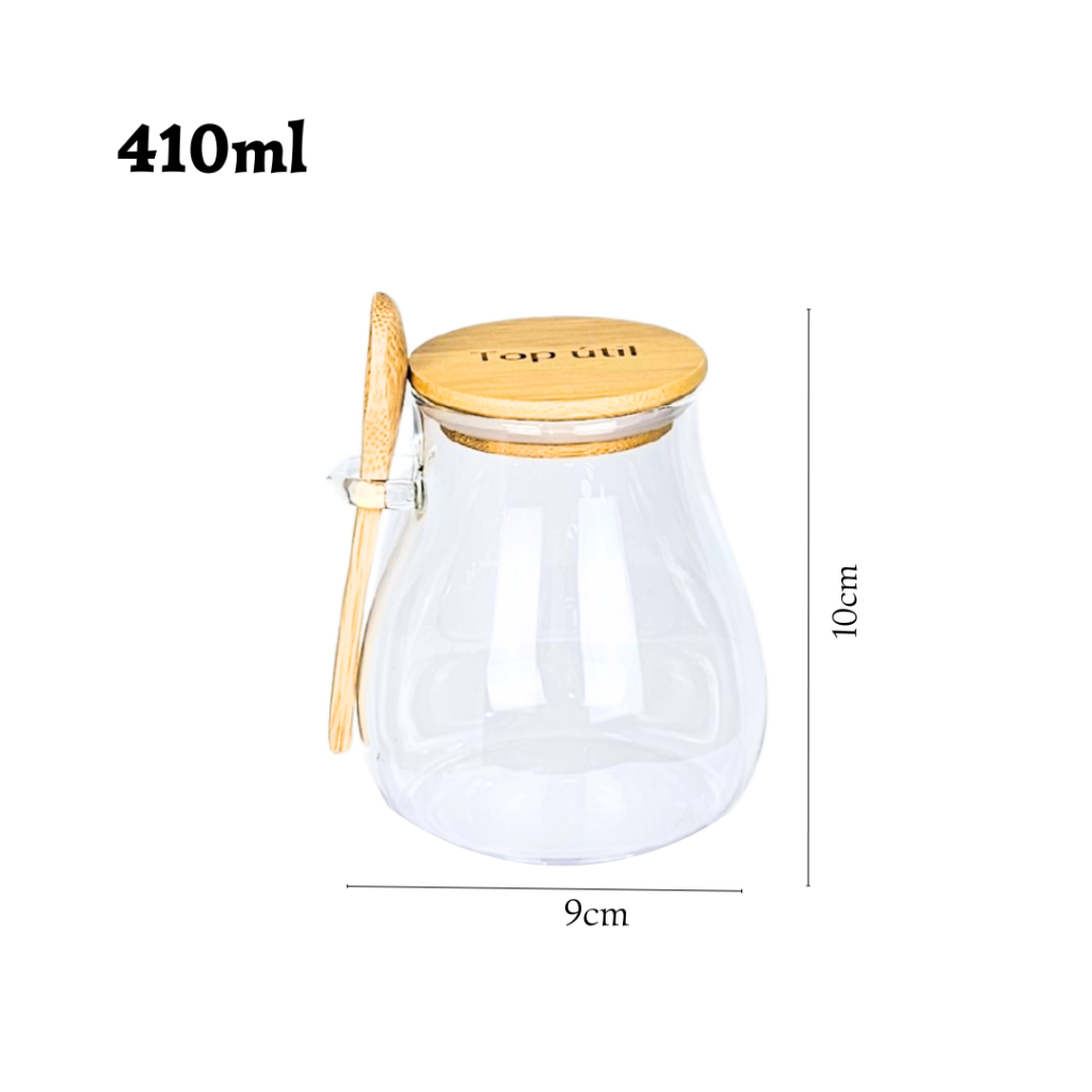 Kit 02 Pote De Vidro Oval 230ml 410ml 690m 1050ml Tampa Bambu Hermético Com Colher SEM ADESIVO MIMI