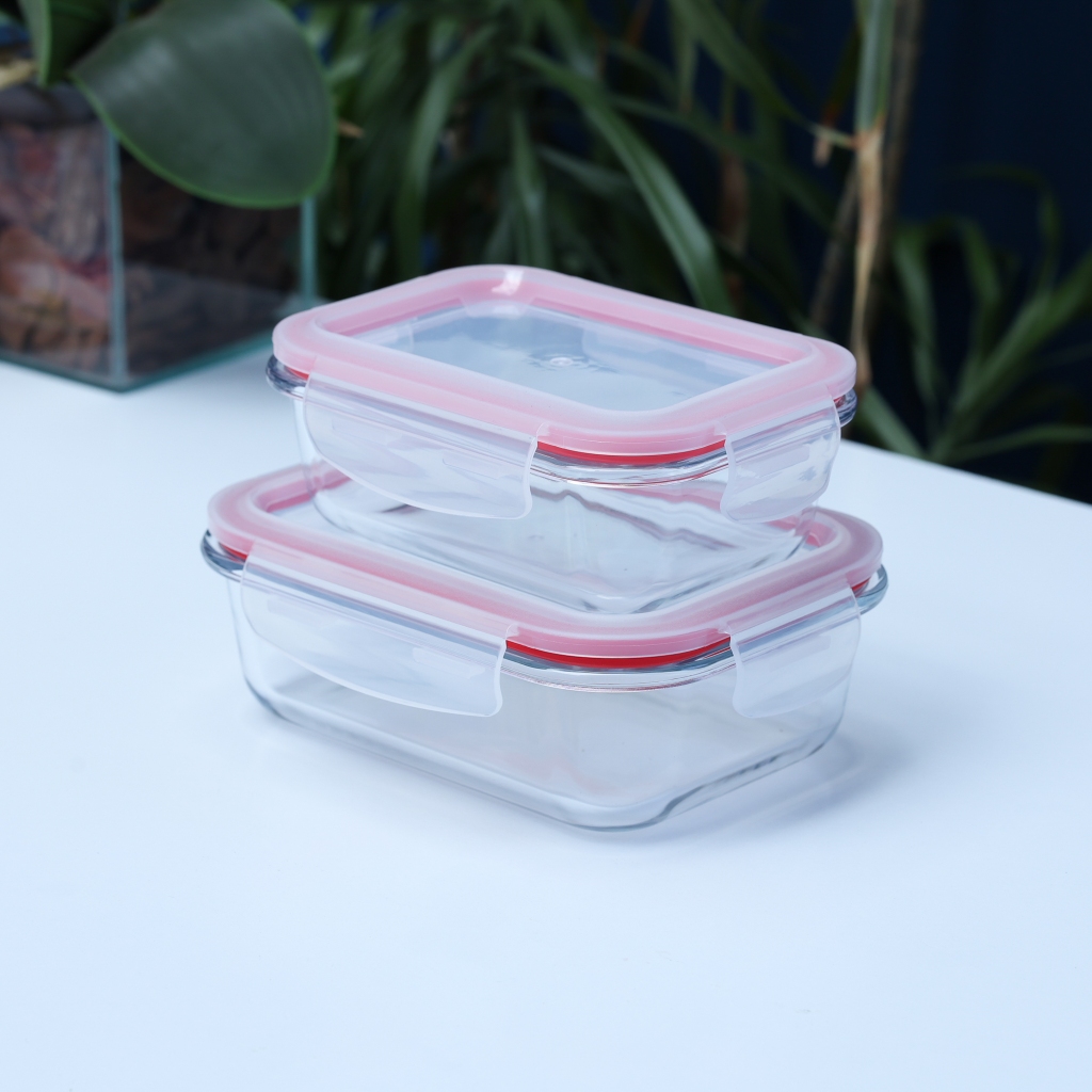 Kit 02 Potes de Vidro Com Tampa Hermética 370 + 640 ML - Marmita Fitness