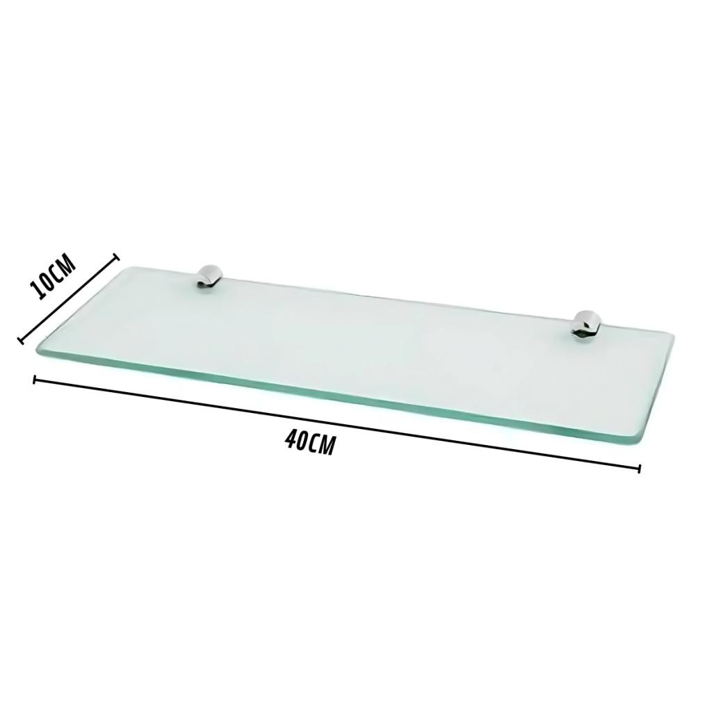 Kit 02 Prateleiras de Vidro 40cm Porta Shampoo Banheiro Fixação Dupla de Parede/Lavanderia