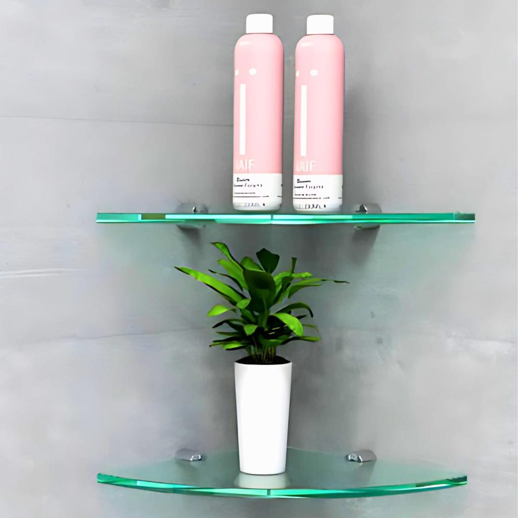 Kit 02 Prateleiras Porta Shampoo de Vidro para Banheiro Lavanderia e Prateleira