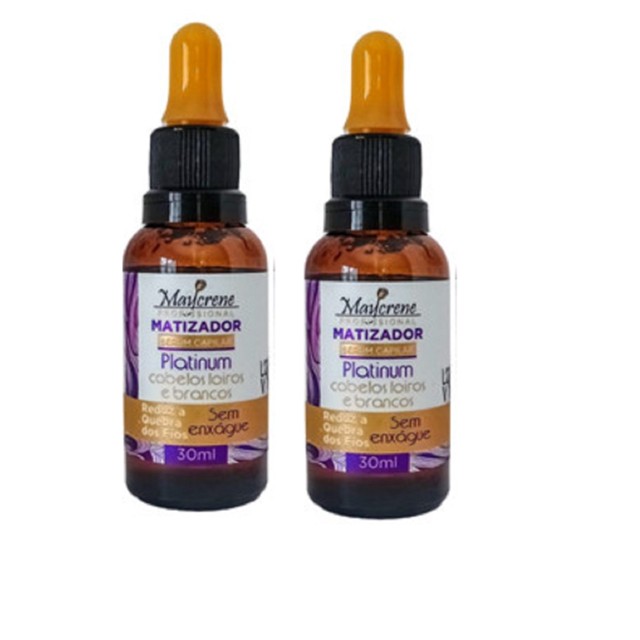 | kit 02 Sérum Capilar 30ml Matizador Para Loiros E Brancos Maycrene este produto | R$ 29,31 | 2% | 4.9/5 | 1 |