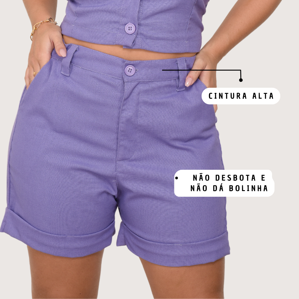 Kit 02 Short Feminino de Linho com Bolso Cintura Alta Alfaiataria Barra Italiana com Botao