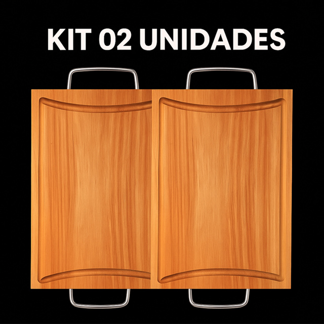 Kit 02 tabua de Carne Rústica em Madeira de Eucalipto com Alça Inox Churrasco Premium