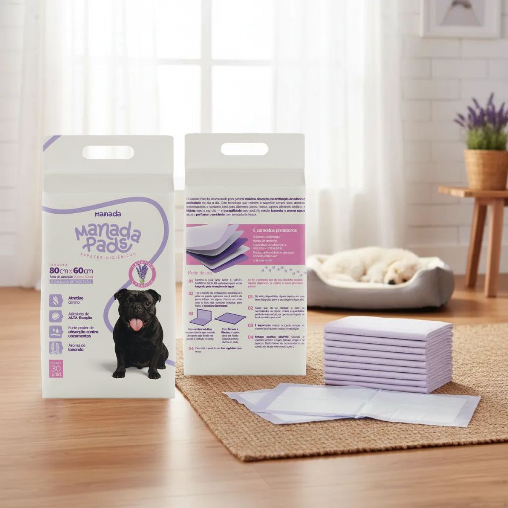 Kit 02 Tapete Higiênico Para Cães Manada Pads Lavanda 80x60cm 30 Unidades