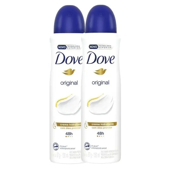 | Kit 02 unidades Desodorante Aerossol Dove Original Tradicional 150ml este produto | R$ 38,90 | — | 4.9/5 | 64 |