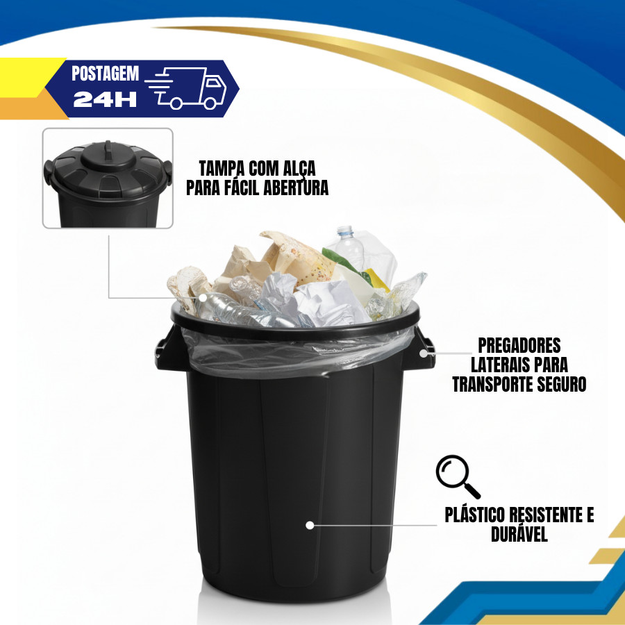 Organizar o espaço e manter a higiene ficou ainda mais prático com o kit de 2 cestos de lixo de 60 litros. Esse conjunto garante maior capacidade de descarte, ideal para locais que precisam de mais de um ponto de coleta, como cozinhas, áreas externas, estabelecimentos comerciais ou condomínios. Características do Produto: Conjunto com 2 unidades para maior praticidade Cada cesto possui tampa com trava que evita mau cheiro Estrutura resistente para uso intenso Fácil de limpar e higienizar no dia a dia Design discreto em preto e branco, combinando com qualquer ambiente Especificações Técnicas: Material: Plástico rígido reforçado Capacidade individual: 60 litros Dimensões aproximadas de cada unidade: 60 cm (altura) x 45 cm (largura) Formato redondo com tampa basculante com trava Kit contendo 2 peças (nas cores preto ou branco) Ideal para quem busca praticidade e organização, o kit de 2 cestos de lixo de 60 litros oferece resistência, capacidade e um excelente custo-benefício.