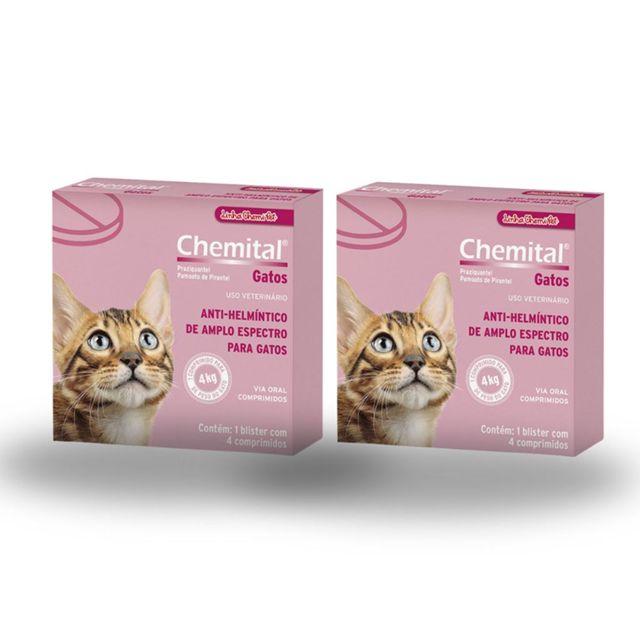 Kit 02 Vermífugo Chemital Chemitec Para Gatos com 4 Comp