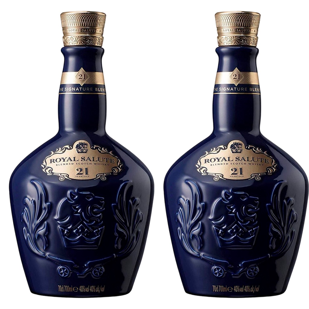 O Royal Salute 21 Anos é um blended whisky escocês produzido pela Chivas Brothers. É composto por uma mistura de whiskies single malt e whiskies de grão de diferentes idades, sendo que o whisky mais jovem utilizado descansou em barris de carvalho por 21 anos. Foi introduzido pela lendária empresa dos irmãos Chivas no ano de 1953, em homenagem a coroação da rainha Elizabeth II, da Inglaterra. Seu nome faz referência ao disparo de 21 tiros de canhão, executados como honra a família real. Além do precioso líquido, o Royal Salute se destaca por sua bela garrafa feita em porcelana, produzida pela prestigiada companhia Wade Ceramics. São três edições de cores diferentes, homenageando cada uma das joias da Coroa Real: azul (safira), verde (esmeralda) e vermelha (rubi). As características de sabor e aromas do Royal Salute foram criadas procurando o equilíbrio e suavidade, portanto, não há a predominância clara de algum aroma, como é comum em single malts. Trata-se de whisky feito com a intenção de ser agradável a todos, apreciadores de whisky ou não, e nisso ele é muito bem sucedido. Apresenta aromas agradáveis e frescos, com destaque para cascas de laranja, especiarias suaves, pão de gengibre e cereais. No paladar, acompanha os aromas frescos e agradáveis, com uma abordagem suave, antes de aparecem notas de caramelo queimado e algo de alcatrão. Em seguida, aspectos da madeira aparecem, além de um leve defumado.