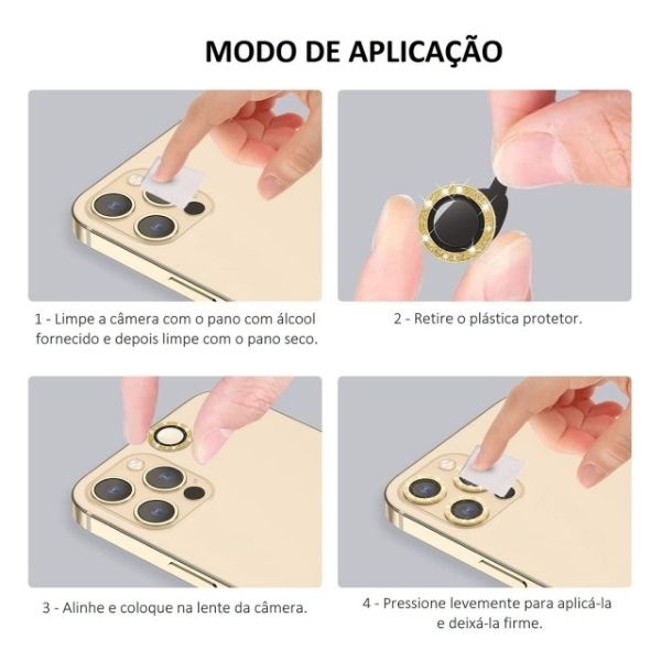 Kit 02X Pelicula Lente Camera Brilho Diamante Para iPhone 13 / 13 Mini - Charme Beleza e Protecao
