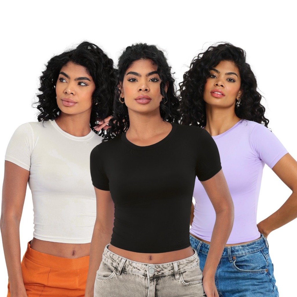 KIT 03 - Baby Tee Feminina - Blusa Slim Fit Manga Curta - Blusa Compressão