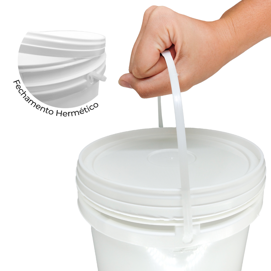 Kit 03 Baldes Plástico 5L Hermético com Alça Plástica O balde conta com um fechamento hermético e sua composição é em polipropileno, sendo resistente a impactos ou quedas. Completamente atóxico e inertes, não propagando nenhum cheiro ou gosto. Pode ser utilizado na manipulação ou armazenamento de produtos variados, sendo eles alimentícios ou não. Especificações Técnicas: - Capacidade: 5L - Altura: 23cm - Largura: 20cm - Diâmetro: 20cm Conteúdo da Embalagem: - 03 Baldes 5L - 03 Tampas Hermética PERGUNTAS FREQUENTES - FAQ 1º. O seu uso é ideal para que tipo de armazenagem? R: Alimentos, grãos, pastosos, bebidas, produtos de limpeza, ração animal, entre outros. 2º. Qual é o material usado para fabricação do balde? R: O material é de polipropileno (Atóxico). 3º. A tampa é de encaixe ou de rosca? R: A tampa é de encaixe hermética.