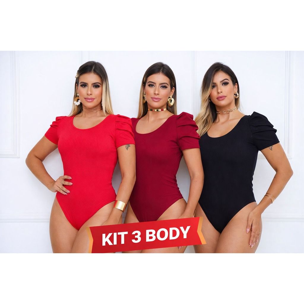 Kit com 03 Body feminino com manga princesa, feito em tecido canelado, confortável e com boa elasticidade. Modelagem que valoriza o corpo e veste muito bem. ✔️ Tamanho único – veste do 36 ao 42 ✔️ Tecido canelado macio ✔️ Não fica transparente ✔️ Ideal para looks casuais e elegantes