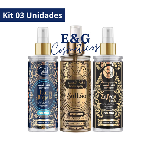 Kit 03 Body Splash Árabe Masculino - Tariq Royale - Sultão - Zafran Soul Cosméticos 200ml