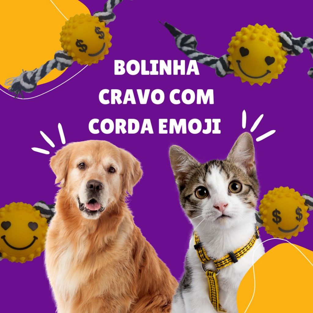 Brinquedo Cravinho Emoji com corda, excelente para interação com seu pet. Desafie a capacidade mental do seu cachorro, com brinquedos que ajude em sua interação de maneira segura. Características: - Antiestresse. - Produto 100% Brasileiro. - Feito de vinil atóxico. - Borracha macia super resistente. - Lavável. Benefícios: - Ajuda na higiene bucal do cão, prevenindo o acúmulo de bactéria e tártaro. - Sacia a vontade de mastigar. - Alívio do estresse e tensão. - Enriquecimento sensorial, criando sensações de desejo, caça e bem-estar. Quantidade: 3 unidades Tamanho: 53mm Material: Borracha Atóxica - Corda 100% algodão (a cor da corda varia conforme estoque). Emojis: Sortidos Cor: Amarelo. AGUARDAMOS A SUA COMPRA !!!!! ATENÇÃO: Recomendado para animal de pequeno e médio porte; Os brinquedos são exclusivos para animais domésticos; Nenhum brinquedo é indestrutível, retire ao ver sinais de deterioração; Não permita seu animal de estimação usar o brinquedo deteriorado; Não permita que seu animal engula ou mastigue partes do produto; Recomendado a supervisão na utilização do brinquedo.