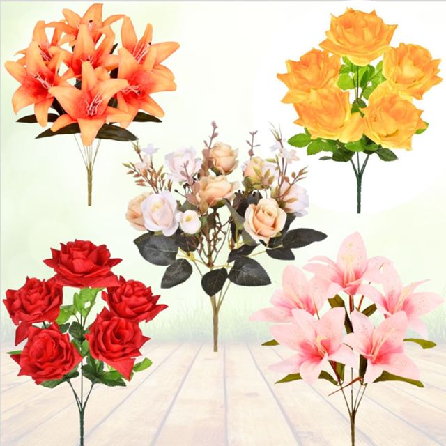 Catalogado na subcategoria Flores (de Casa e Construção), Kit 03 buquês rosa ou lirio com 5 galhos flores artificiais para decoração festas / casa/ casamentos está à venda na Shopee Brasil por R$ 19,99 (71% de desconto sobre o preço original de R$ 68,93). Nota 4.8 de 5 na Shopee e 67 unidades vendidas, este produto se destaca pelo excelente custo-benefício.