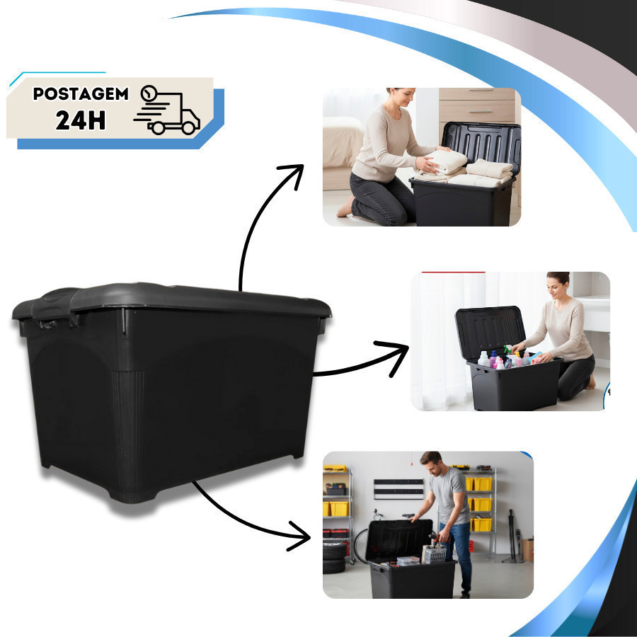 Kit 03 Caixa Organizadora Preta 50 Litros Resistente Com Travas