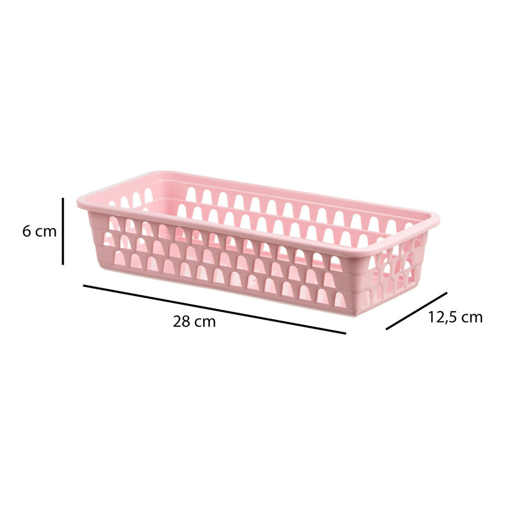 Cesto Organizador Multiuso Perfeitos para Quarto, Lavanderia, Banheiro, Armário ou Prateleira! Organize com praticidade e estilo! Esse conjunto de organizadores é ideal para quem busca otimizar espaços e manter tudo no lugar certo. Seu design vazado permite ventilação e fácil visualização do conteúdo, enquanto o plástico reforçado garante durabilidade no dia a dia. Especificações: Dimensões (cada cesto): Largura: 28 cm Profundidade: 12 cm Altura: 6 cm Material: Plástico Reforçado (vazado) Destaques: Ideal para organizar gavetas, armários, prateleiras e nichos Multiuso: ótimo para produtos de higiene, acessórios, cosméticos, materiais de limpeza e muito mais Leve, resistente e fácil de limpar.