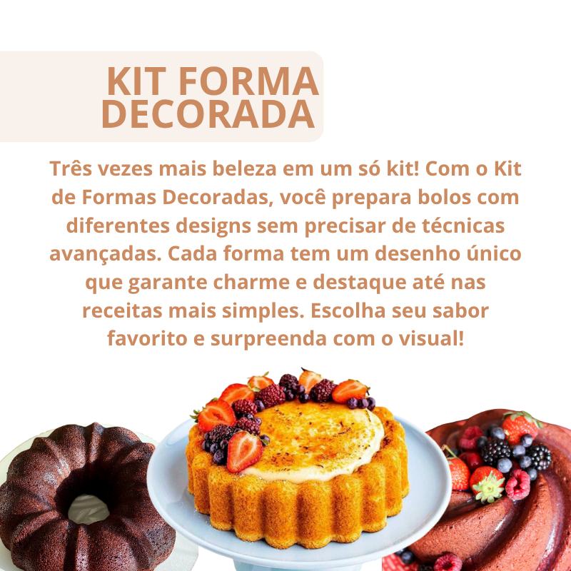 Kit 03 Forma Decorada Para Bolo 22cm