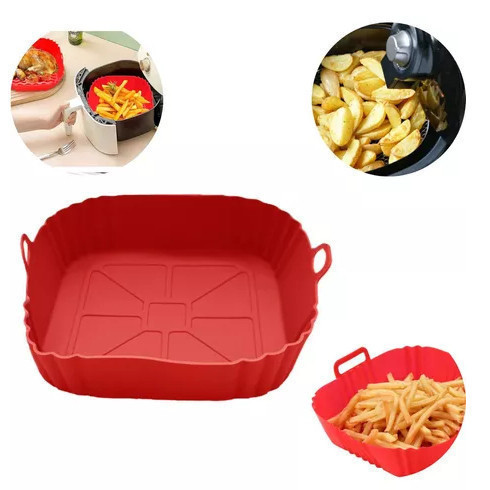 KIT 03 Formas de Silicone Quadrada Antiaderente Assadeira Air Fryer Forno Forma Fritadeira Elétrica com Alça - QUADRADA