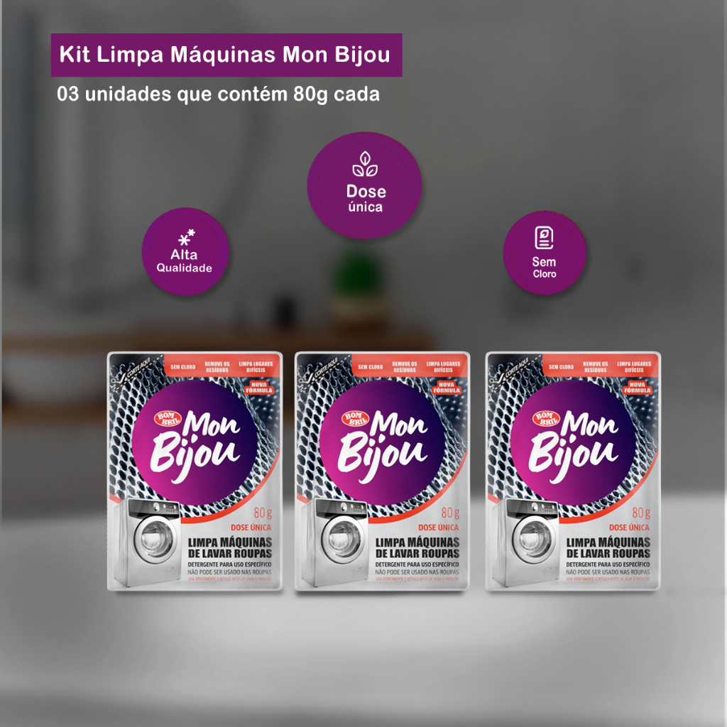 Kit 03 Limpa Máquina de Lavar Roupas em Pó 80g Mon Bijou