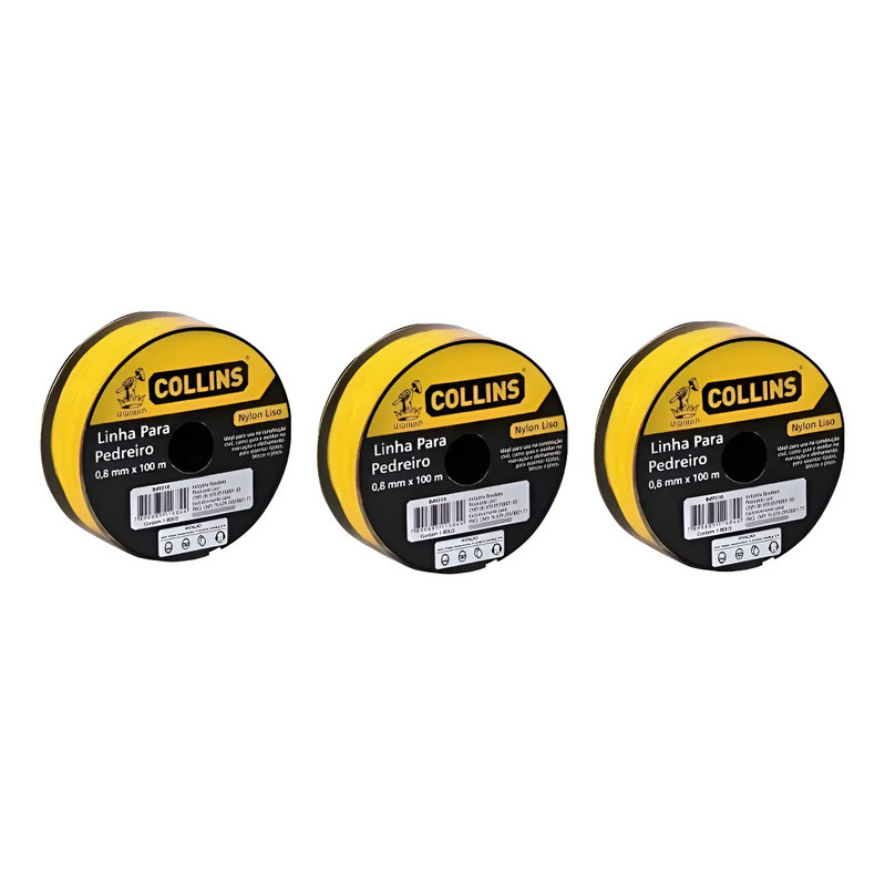 | KIT 03 LINHAS PEDREIRO NYLON AM 0,80MX100MTS - COLLINS este produto | R$ 37,90 | — | 4.6/5 | 3 |