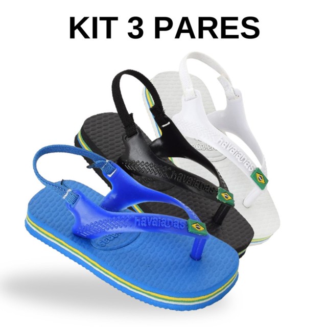 Kit 03 Pares Chinelos Baby Menino Com Elastico Para o Dia a Dia Primeiros Passos Promoção Imperdível