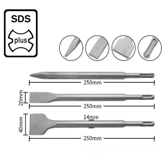 Kit 03 peças 01ponteira e 02 talhadeiras Sds plus