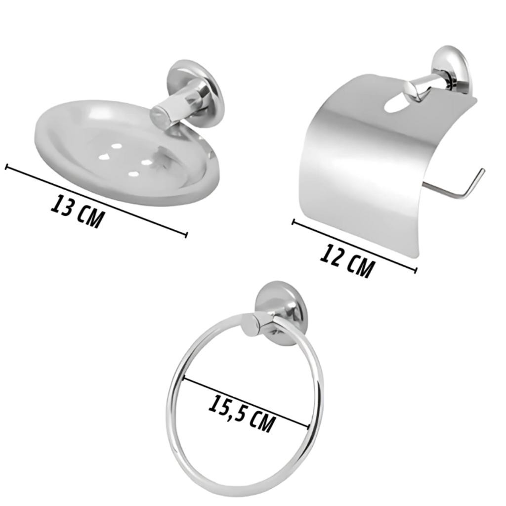 Kit 03 Peças Inox com Porta Toalha Rosto, Papeleira e Saboneteira Veneza Fixação Dupla