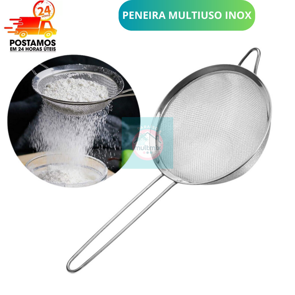 Conjunto de Peneiras em Aço Inox Transforme sua cozinha com este elegante e funcional conjunto de peneiras da Original Line. Projetadas para atender a diversas necessidades culinárias, estas peneiras são essenciais para quem busca praticidade e eficiência ao cozinhar. Características: Material de Qualidade: Feitas em aço inox de alta resistência, garantindo durabilidade e facilidade de limpeza. Design Prático: Cabo com abertura para fácil armazenamento, permitindo pendurar e decorar sua cozinha com estilo. Versatilidade: Ideal para peneirar sucos, chás, farinhas, grãos e até para preparar tapiocas deliciosas. Tamanhos Inclusos: Pequeno: Peneira de 10 cm - Perfeita para tarefas menores. Médio: Peneira de 14 cm - Ideal para necessidades intermediárias. Grande: Peneira de 20 cm - Excelente para quantidades maiores. Benefícios: Massas Leves: Contribui para receitas mais leves e aeradas. Separação Eficiente: Peneira com precisão, separando o útil do inútil. Decoração Funcional: Além de úteis, são peças decorativas para sua cozinha. Adquira esse conjunto de peneiras e eleve sua experiência culinária a um novo patamar!