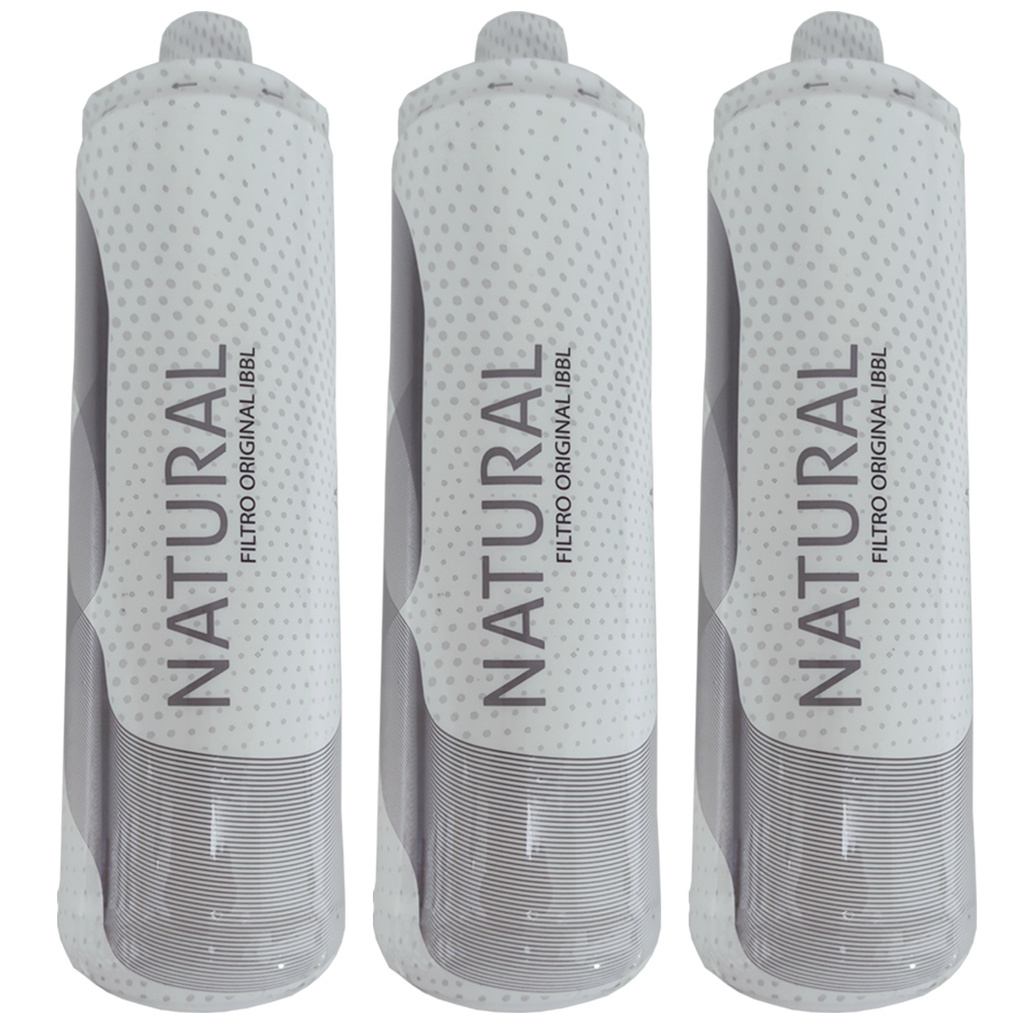 Contém: 03 - Filtro Refil Natural C+3 Para Purificador de Água FR600 IBBL; Modelo Compatível: FR600; Atenção: Produto ORIGINAL, possui novo rótulo. O Refil Girou Trocou Natural C+3 possui o sistema de TRIPLA FILTRAGEM, que retém as impurezas da água como barro, ferrugem e sedimentos; reduz o cloro e elimina sabores e odores indesejáveis da água; Prático sistema refil GIROU TROCOU garante ao usuário uma fácil substituição do refil e manutenção do equipamento. Características Técnicas Tripla filtragem: • Primeira Etapa: Elemento filtrante de microfibra de polipropileno de densidade graduada; • Benefícios: Retenção de partículas de areia, barro, ferrugem e sedimentos; • Segunda Etapa: Carvão ativado com prata; • Benefícios: Elimina odores e sabores de cloro, além de impedir a proliferação de microorganismos; • Terceira Etapa: Elemento filtrante de microfibra de polipropileno de densidade graduada; • Benefícios: Clarificação final de água e retenção de partículas que conseguiram passar pela 1ª etapa. Garanta a qualidade da água que você consome, troque os refis conforme sugerido, é rápido, prático e fácil Produto a ser utilizado com água potável, de acordo com Portaria 518/2004 do MS. Eficiência na retenção de partículas Classe (P) III, tamanho da partícula (µm) > 5 a < 15 Eficiência na retenção de Cloro Livre Classe (C) I, % de redução de cloro > 75% Vida útil do refil: 3.000 litros ou até 6 meses Dimensões Sem Embalagem • Largura: 65 mm • Altura: 223 mm • Profundidade: 65 mm • Peso Líquido: 0,284 kg Cod: 2712/3