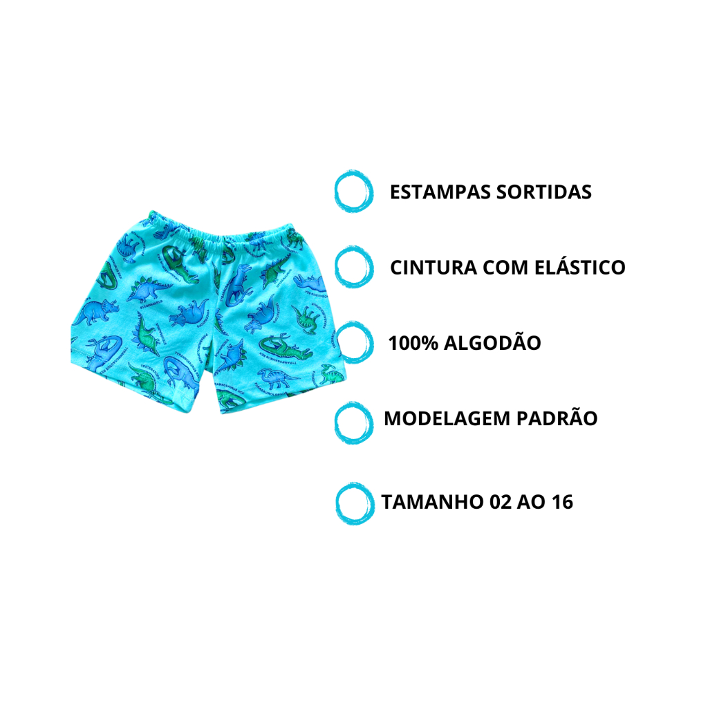 Kit 03 Shorts Masculino Avulso De Pijama Infantil Menino 02 ao 16 100% algodão