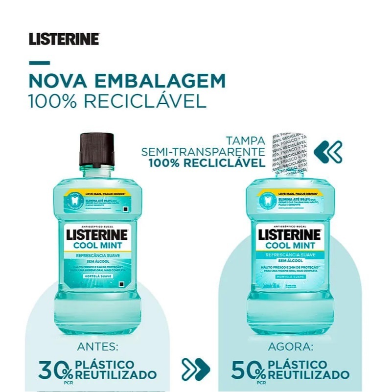 KIT 03 Uni Antisséptico Bucal Listerine COOL MINT Sem Álcool - 1 Litro