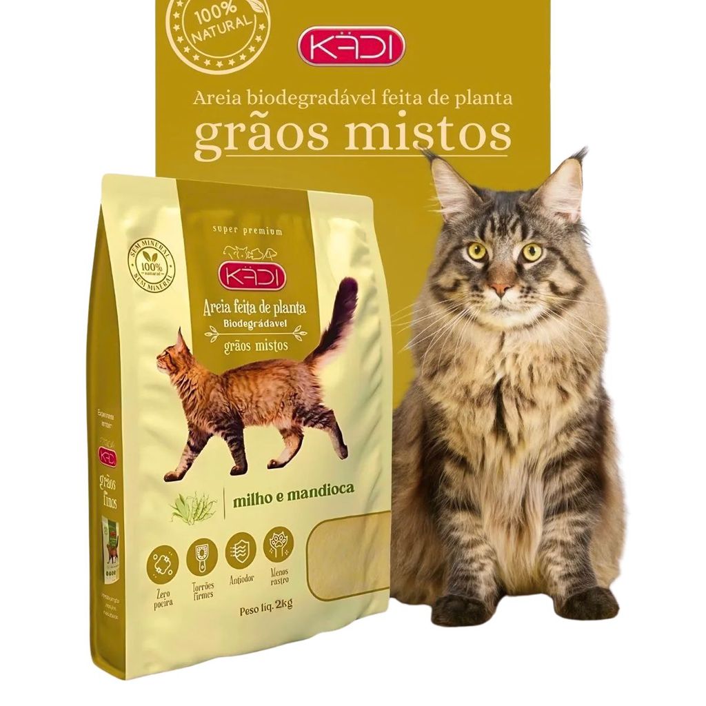 Descrição: Kit 03 Unidades Areia Higiênica Gatos Grãos Mistos Kadi 2kg A Areia Biodegradável Kadi Grãos Mistos foi desenvolvida para garantir higiene, praticidade e conforto aos gatos. Produzida com ingredientes naturais e sustentáveis, é segura para os pets e para o meio ambiente. Sua formulação oferece excelente absorção, controle de odores e formação de torrões firmes, facilitando a limpeza da bandeja higiênica. Benefícios: 100% biodegradável e ecologicamente correta Alta absorção e controle eficiente de odores Forma torrões resistentes que não quebram facilmente Textura confortável para as patas dos gatos Embalagem prática de 2Kg Especificações: Produto: Areia higiênica biodegradável Indicação: gatos de todas as idades Apresentação: saco de 2Kg Modo de uso: preencher a caixa higiênica com a areia e retirar diariamente os torrões formados _________________________________________________________________________ A MANADA ANIMAL é um marketplace de produtos veterinários. É a escolha certa para tutores que prezam pela qualidade dos produtos que seu animal necessita. Tudo com o suporte de uma equipe de veterinários e gestores com mais de 10 anos de experiência no mercado. Fique tranquilo, todos os nossos produtos são originais, adquiridos através de distribuidores credenciados! Ah, e todas as vendas acompanham nota fiscal! MANADA ANIMAL, Tranquilidade pra você, cuidado para ele!