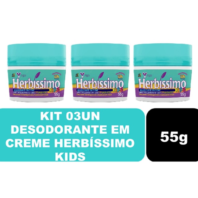 | Kit 03un Desodorante Em Creme Herbíssimo Kids Prebiótico 55g este produto | R$ 21,99 | — | 4.9/5 | 59 |