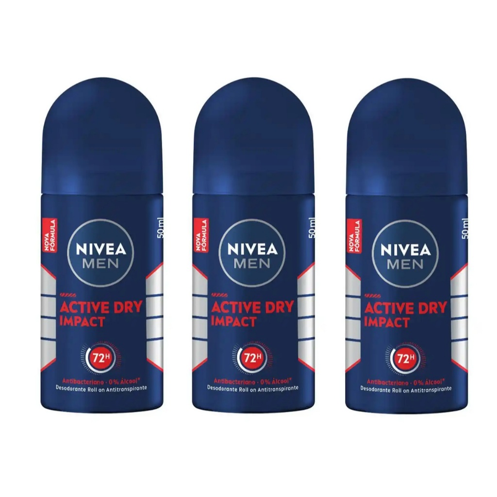 Kit 03un Desodorante Roll-on Nivea Men Active Dry Impact 50ml
