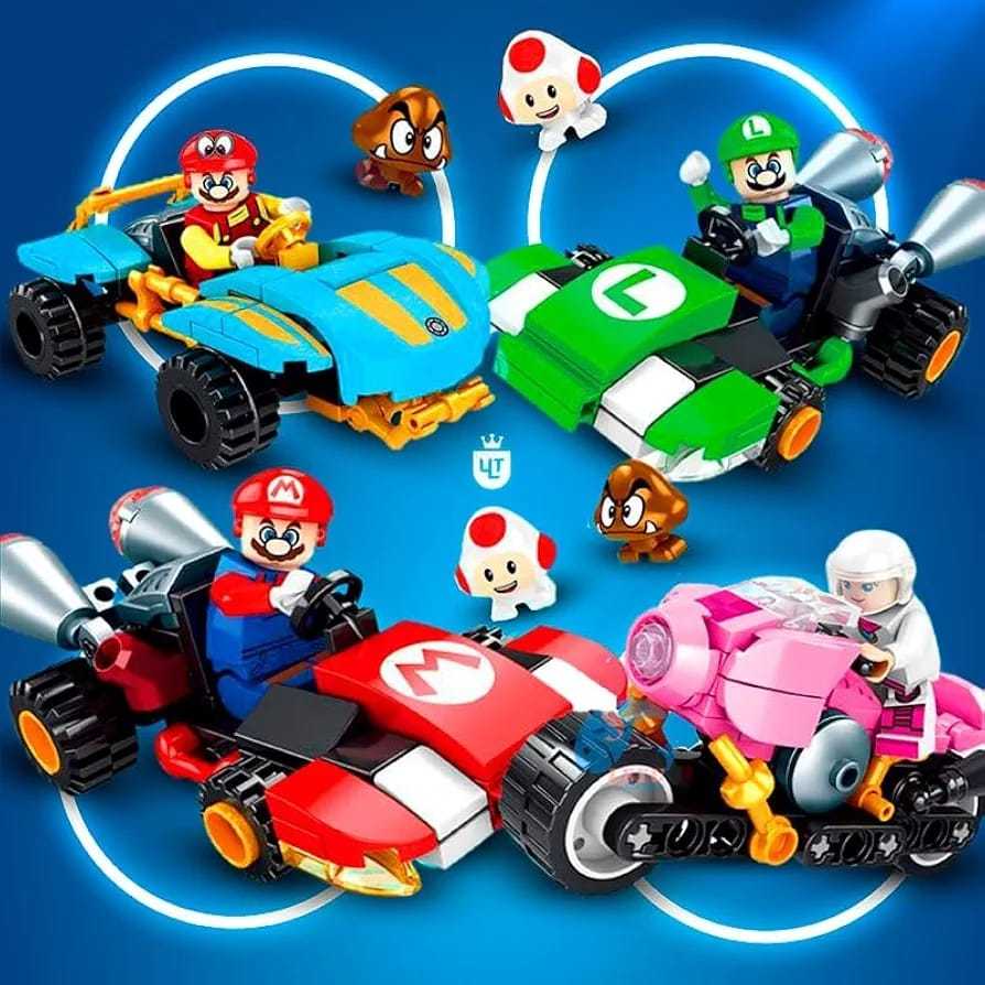Kit 04 Caixas Blocos de Montar Mario Kart Carrinho Luigi Princesa
