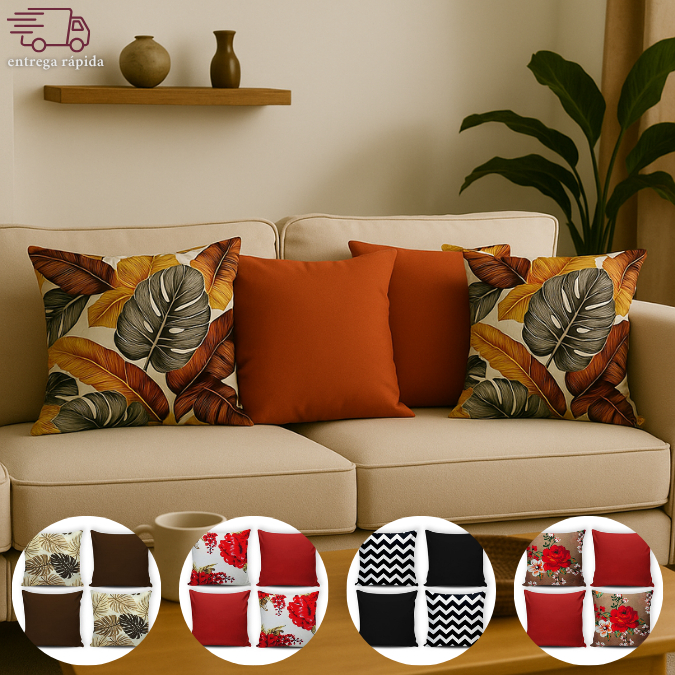 Conjunto de Capas para Almofadas - Elegância e Praticidade para sua Casa 📦 O que está incluso: 2 Capas lisas (Oxford) 2 Capas estampadas (Gorgurinho) Transforme o visual do seu ambiente com este kit de capas para almofadas. Feitas com tecido de alta qualidade, essas capas são ideais para decorar sua sala, quarto ou escritório com um toque de estilo e sofisticação. 💎 Destaques do produto: Tamanho: 45cm x 45cm, compatível com enchimentos padrão Zíper escondido, para um acabamento impecável e fácil remoção Capas estampadas com frente e verso iguais, garantindo um visual uniforme Lavagem em modo leve (sem alvejantes), preservando a qualidade do tecido 🚚 Envio Rápido e Garantido: Todos os produtos são enviados via Shopee Xpress em até 2 dias úteis! ⚠️ Informações importantes: Somente as capas (não acompanha enchimento) Não realizamos troca de estampas ou cores após a compra Adicione charme e conforto ao seu lar com este conjunto prático e moderno! 🏡✨