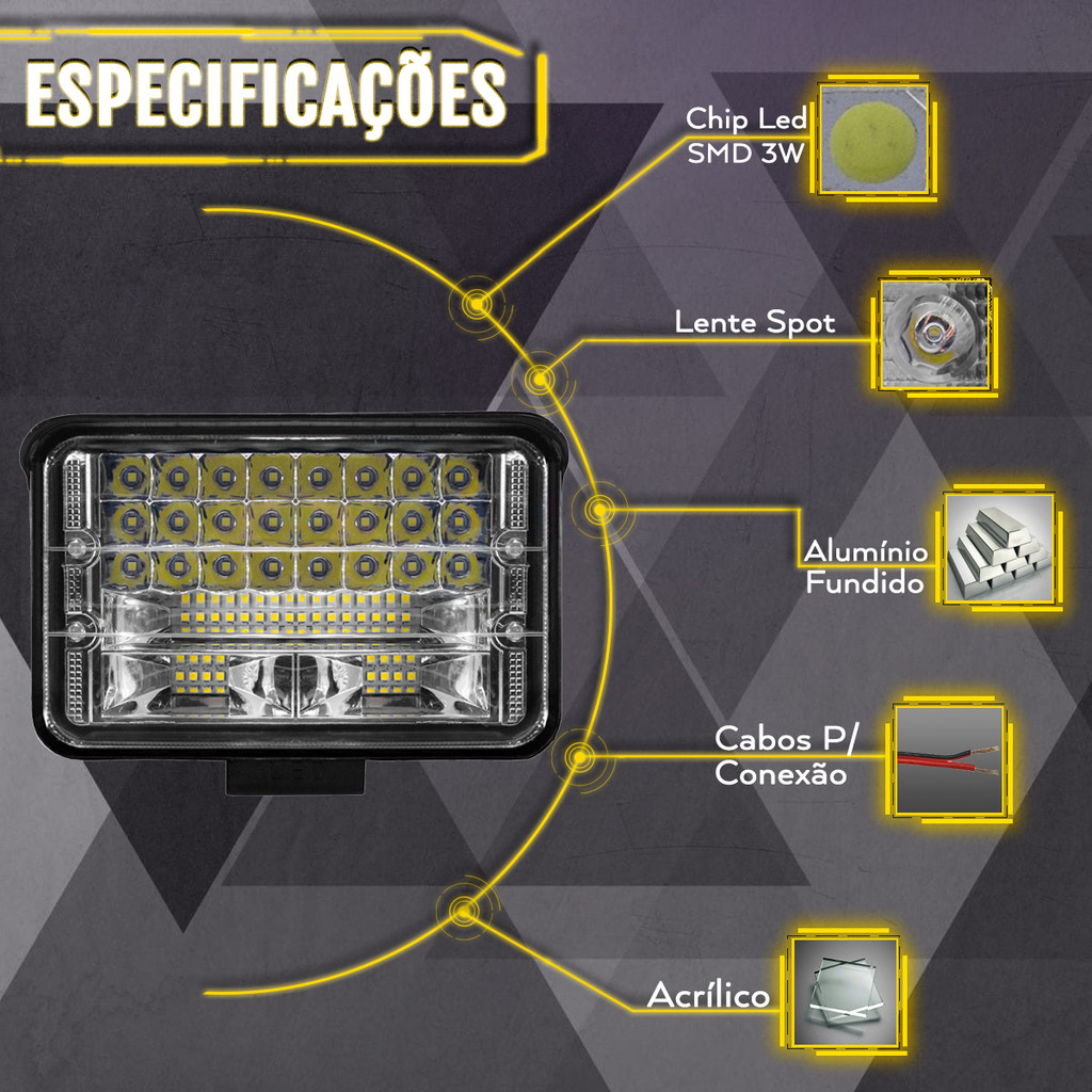 | Kit 04 Farol de Led Retangular 48 LEDs Bi-volt 9-36V 144W Branco Je... este produto | R$ 359,00 | — | 5.0/5 | — |