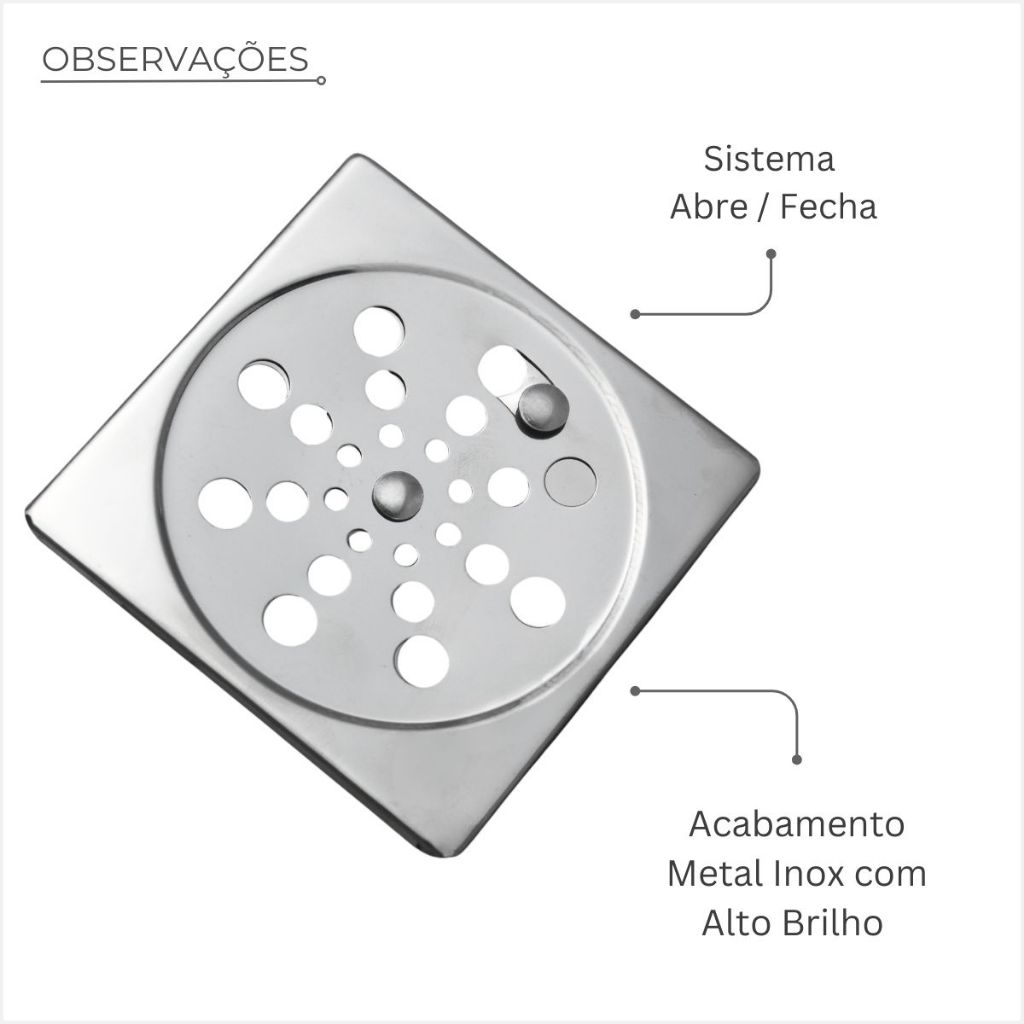 kit 04 Pçs Tampa Ralo Grelha Quadrada Com Fecho Abre Fecha