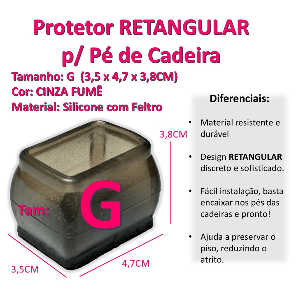 Capa de Pé de Cadeira Proteção e Estilo para seus Móveis! A Capa de Pé de Cadeira é a solução ideal para quem busca proteger seus móveis de forma elegante e funcional. Essa capa se encaixa perfeitamente nos pés de cadeiras, garantindo uma proteção eficaz contra arranhões, impactos e atritos. Diferenciais: Material resistente e durável, proporcionando longa vida útil ao produto. Design discreto e sofisticado, que se harmoniza facilmente com diferentes estilos de decoração. Fácil de instalar, basta encaixar nos pés das cadeiras e pronto! Ajuda a preservar o piso, evitando danos causados pelo atrito direto dos pés da cadeira. Mais sobre o Produto: A Capa de Pé de Cadeira protege tanto os seus móveis quanto o seu piso, além de agregar um toque de charme ao ambiente. Ideal para uso em ambientes residenciais, comerciais e escritórios, esse acessório é essencial para quem preza pela conservação de seus móveis. Dicas de Uso: Verifique regularmente se as capas estão bem encaixadas nos pés das cadeiras. Limpe as capas com um pano levemente umedecido para mantê-las sempre em bom estado. Substitua as capas sempre que necessário para garantir a máxima proteção dos seus móveis. A Capa de Pé de Cadeira é a escolha certa para quem busca proteger e decorar seus móveis de forma prática e elegante. Adquira já o seu e garanta mais durabilidade e estilo para o seu ambiente!Cuidamos para que seu produto chegue em perfeitas condições. Seu envio será rápido, em até 24hrs úteis. Agradecemos pela Preferência!